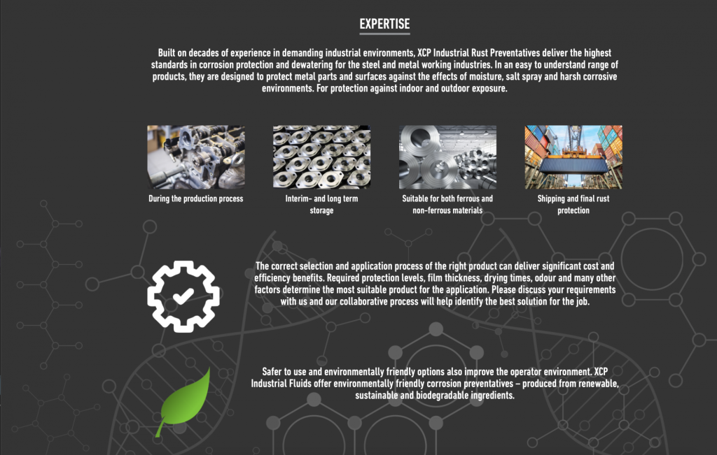 XCP Industrial Korrosionsschutzmittel basieren auf jahrzehntelanger Erfahrung in anspruchsvollen Industrieumgebungen. Sie erfüllen höchste Standards im Bereich Korrosionsschutz für die Stahl- und Metallindustrie. Die Produkte sind dafür ausgelegt Metallteile und -Oberflächen vor den Auswirkungen von Feuchtigkeit, Salznebel und rauen, korrosiven Umgebungen zu schützen. Zum Schutz bei Inhaus und Ausserhaus Lagerung.